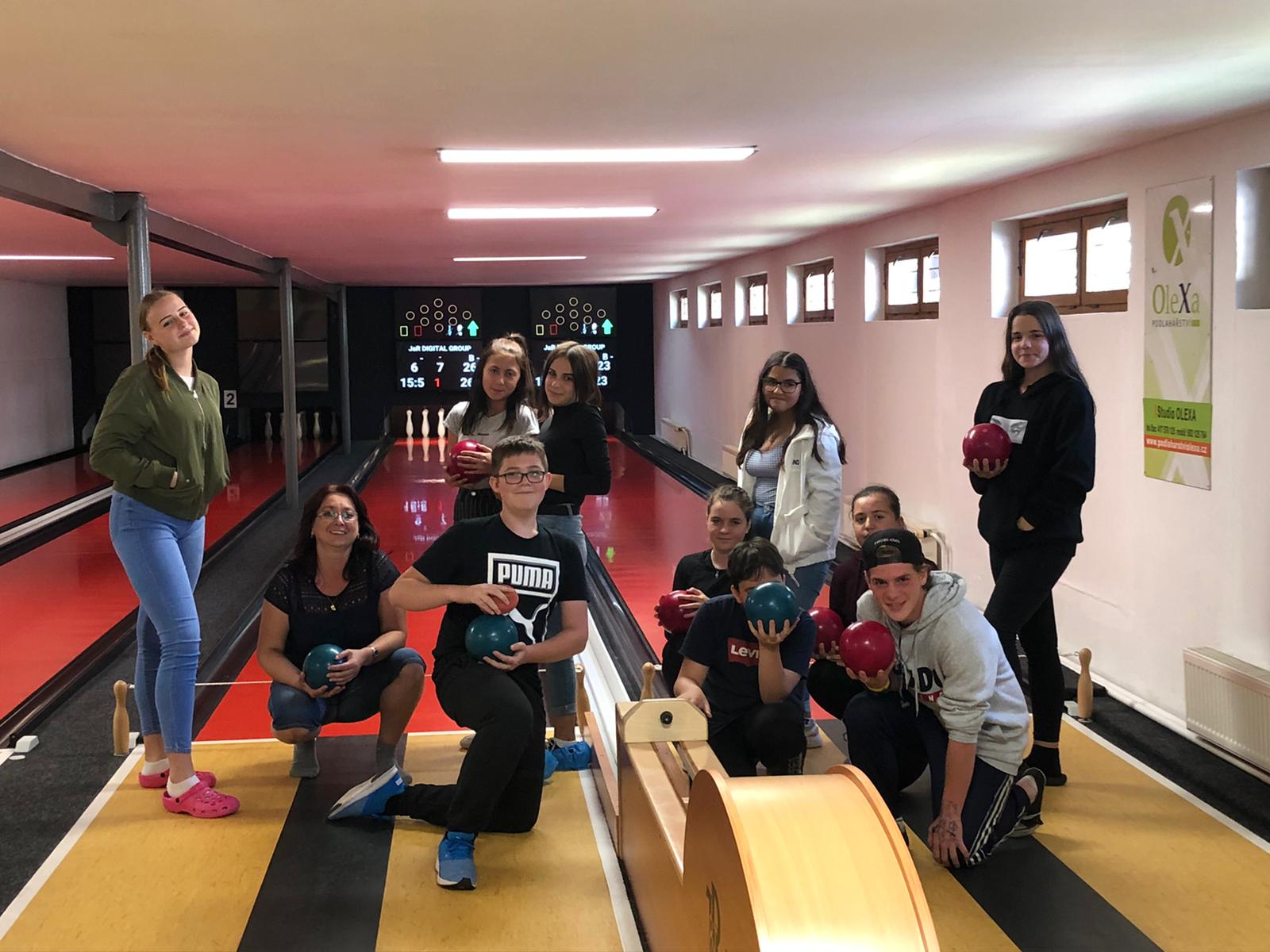 Procházka (Velikost: 185.9 kB) na Liptickou vyhlídku, oběd na školní zahradě ( pizza) a poté kuželkářský turnaj v Kuželně v Duchcově.Soupeřili mezi sebou Tygři a Draci , souboj o nejlepší koulařku třídy byl mezi Aničkou K a Karolínou M.