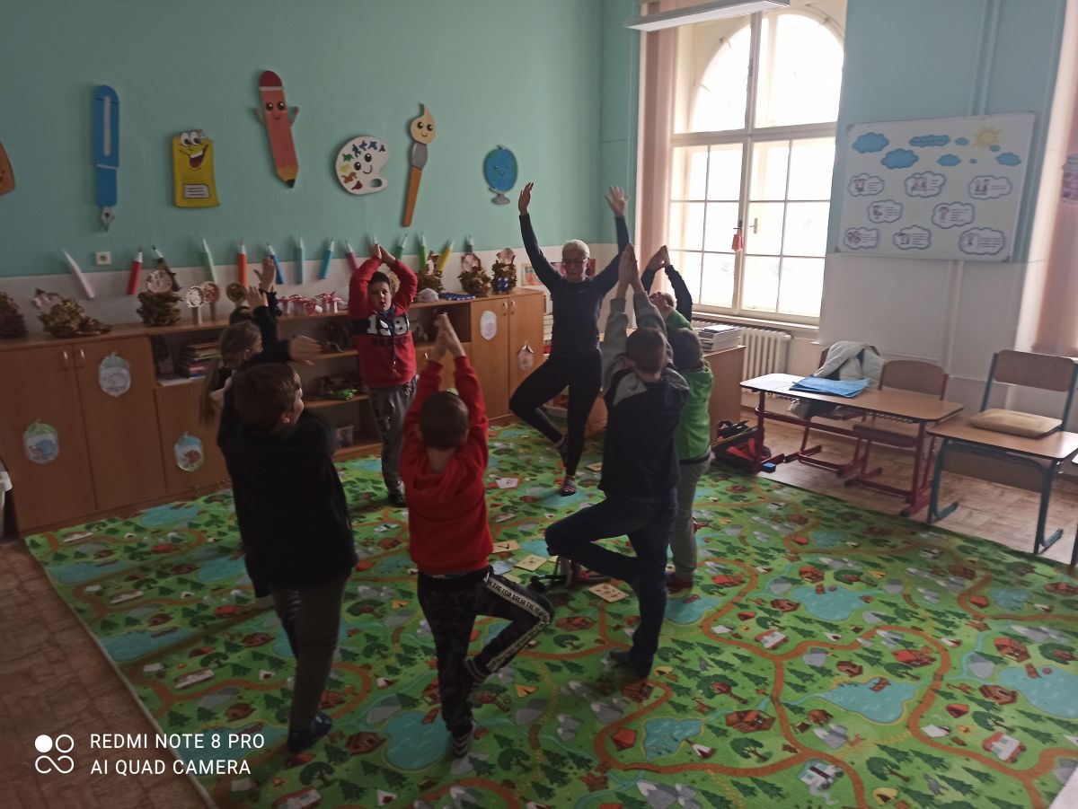 9. prosince 2021 si děti z 2. oddělení zacvičily jógu. Do družinky zavítala lektorka jógy p. Lenka Schuldesová. Děti se s lektorkou naučily správné jógové dýchání, učily se jógové pozice, ve kterých si protáhly a posílily celé tělo.