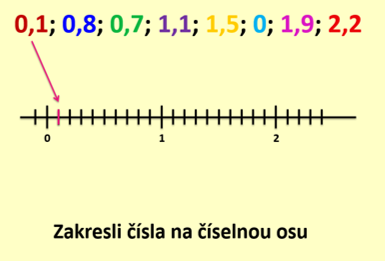 3) Zopakujeme zobrazení desetinných čísel. Na číselné ose mi zobraz následující čísla: