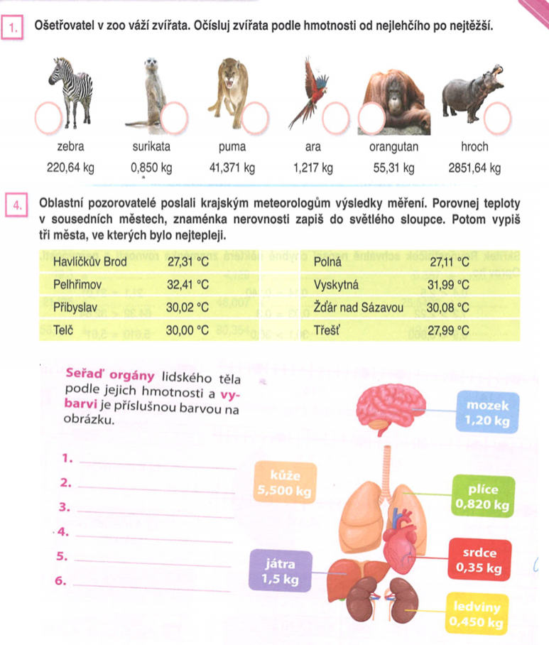 3) Nauč se porovnat desetinná čísla. Podívej se na video zde. Komu nejde spustit video, podívá se do učebnice na str. 79.