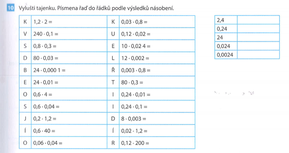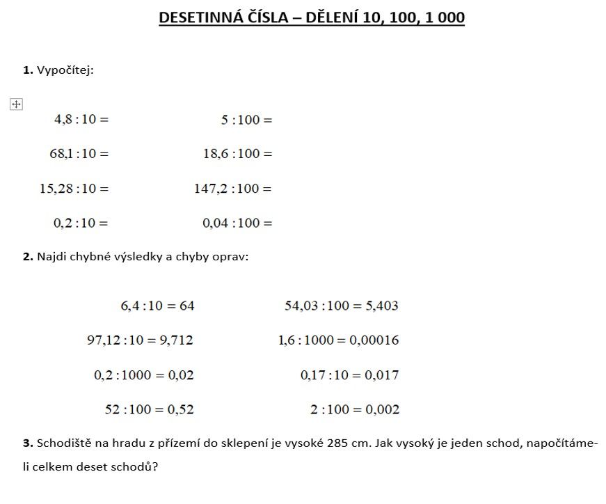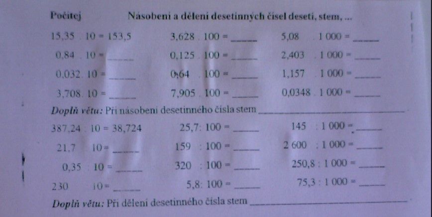 1) napiš do sešitu datum 20.10 a téma: Opakování desetinných čísel