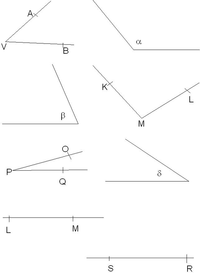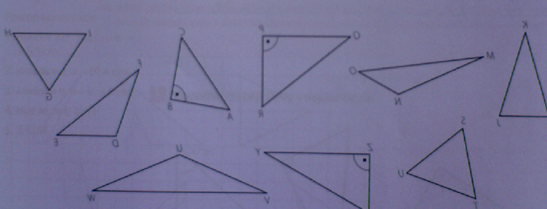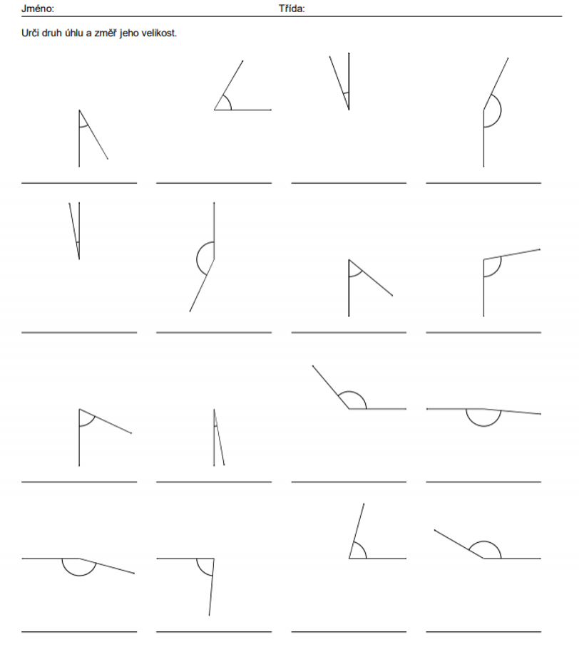 2) U náledujících trojúhelníku změř jejich strany a jejich úhly a urči o jaké se jedná trojúhelníky (obecný, rovnoramenný, rovnostranný, ostroúhlý, pravoúhlý, tupoúhlý)