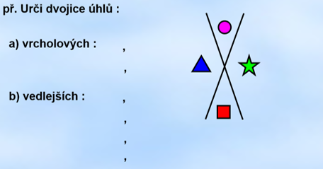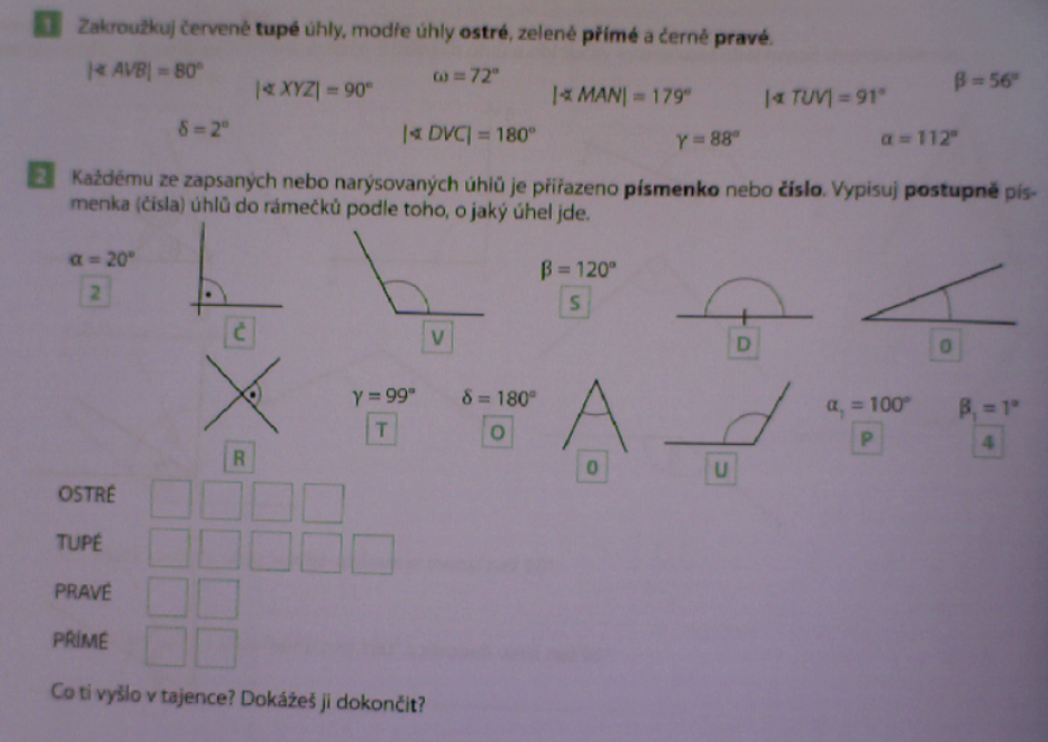Dále pravoúhlé vybarvi červeně, tupoúhlé modře a ostroúhlé zeleně