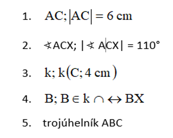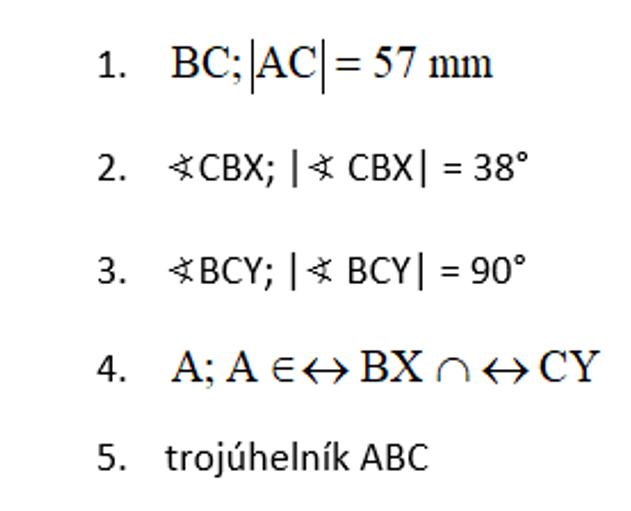 - Zde vidíš zápis konstrukce podle usu. Popis si zapiš do sešitu a pokus se sestrojit daný trojúhelník. Trojúhelník načrtni a narýsuj. Zvol správnou polohu stran.