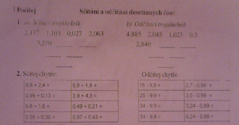 4) Od zítra začneme desetinnáčísla sčítat a odčítat.