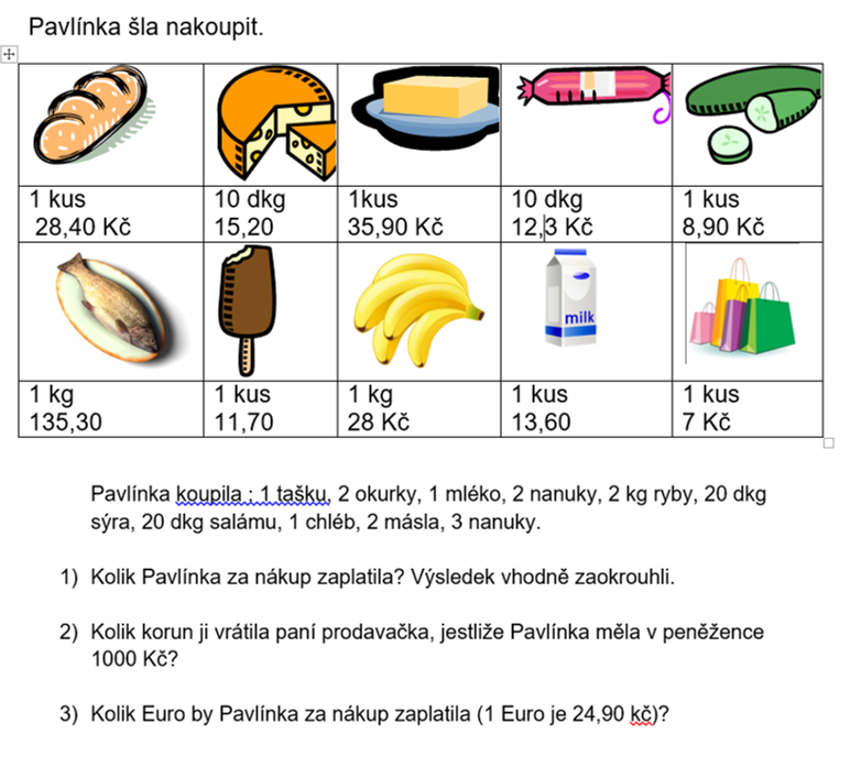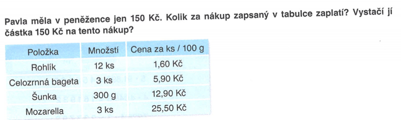 K jednotlivým položkám přidej cenu a sečti kolik je tvůj nákup. Poté cenu zaokrouhli jako v krámě.