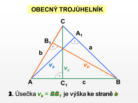1) napiš do sešitu datum 28.4 a téma: Výšky v trojúhelníku