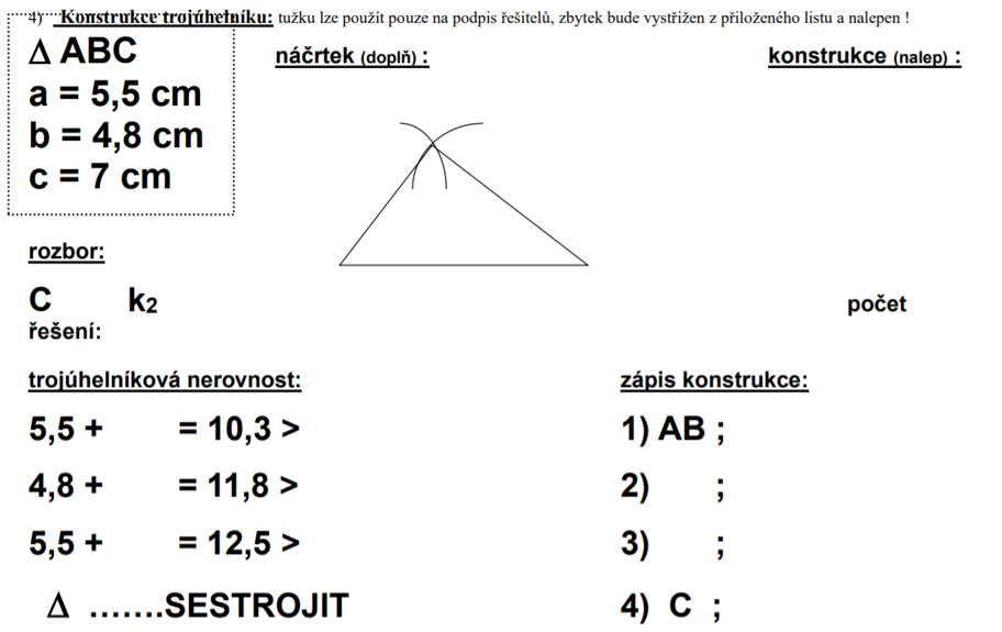1) napiš do sešitu datum 19.4 a téma: Konstrukce trojúhelníku podle věty sus
