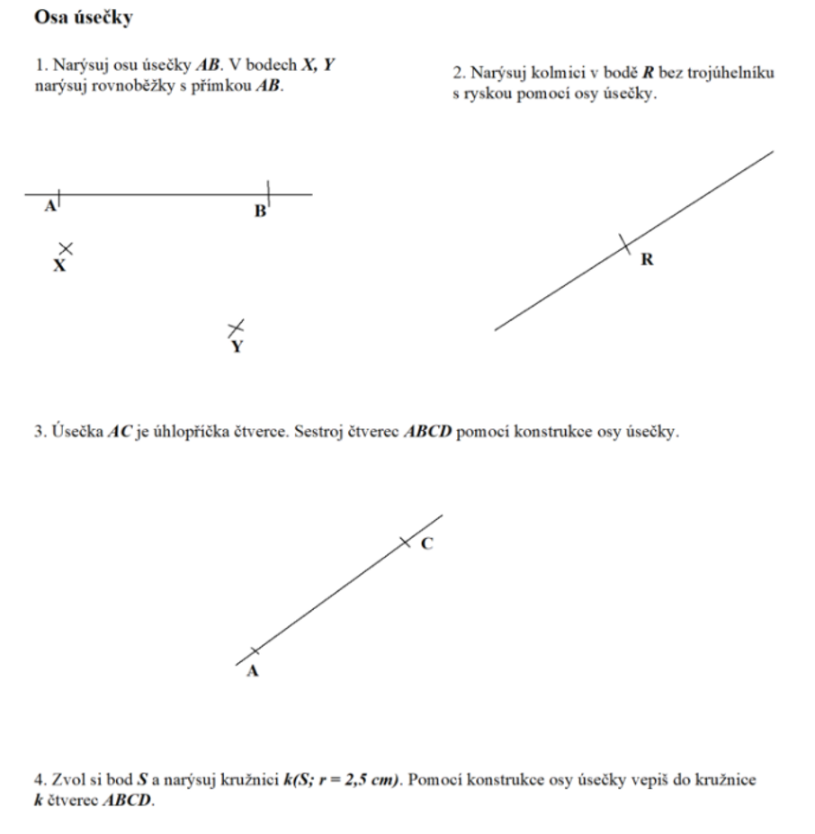 4) Narýsuj si úsečku Ab = 6 cm a CD = 7 cm a narýsuj jim osu