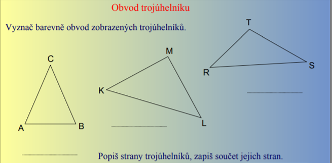 1) napiš do sešitu datum 21.4 a téma: Obvod trojúhelníku