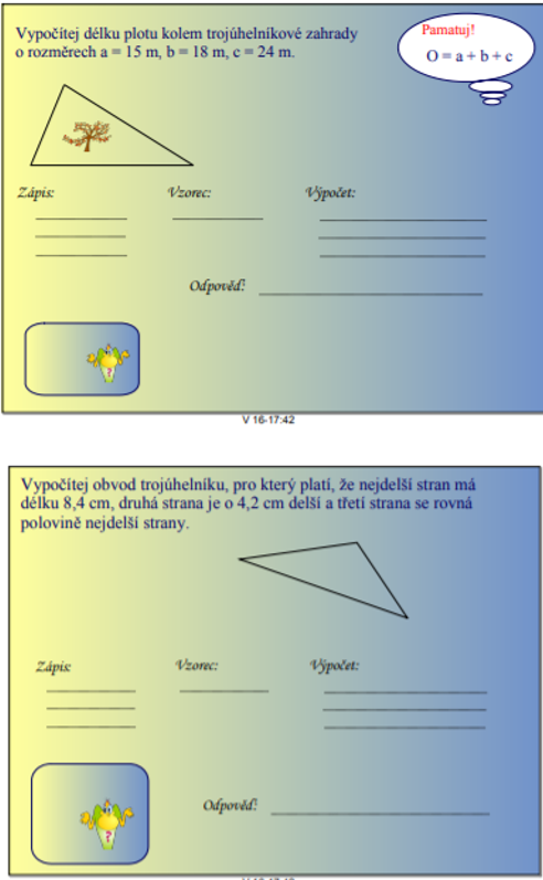 - Vypočítej obvod následujících trojúhelníků: