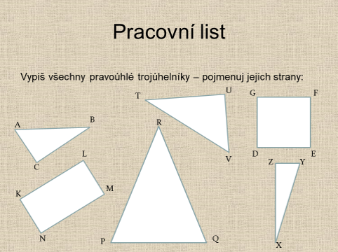 - Nakonec vypočítej obsah pravoúhlých trojúhelníku z dnešního prvního pracovního listu