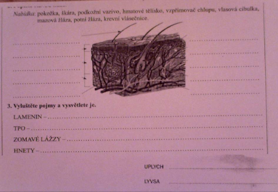 1) zapiš si do sešitu datum a téma hodiny: Mízní soustava