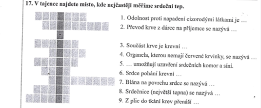 2) Nejdříve si vše zopakuj o cévní osustava pomocí pracovního listu - příští hodinu tě čeká test