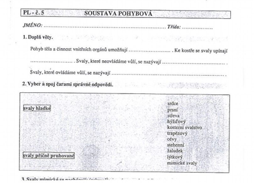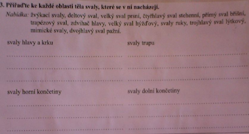 1) zapiš si do sešitu datum a téma hodiny: Svalová soustava - opakování