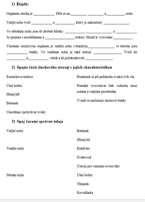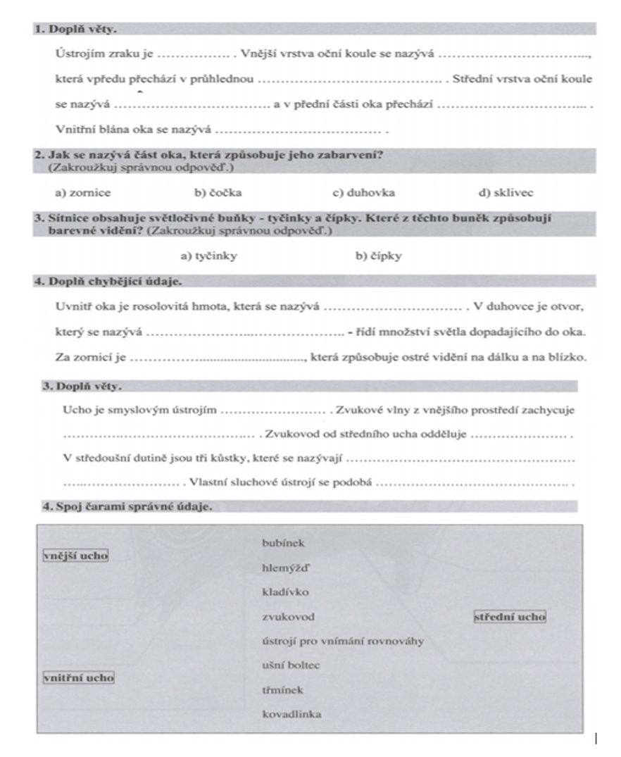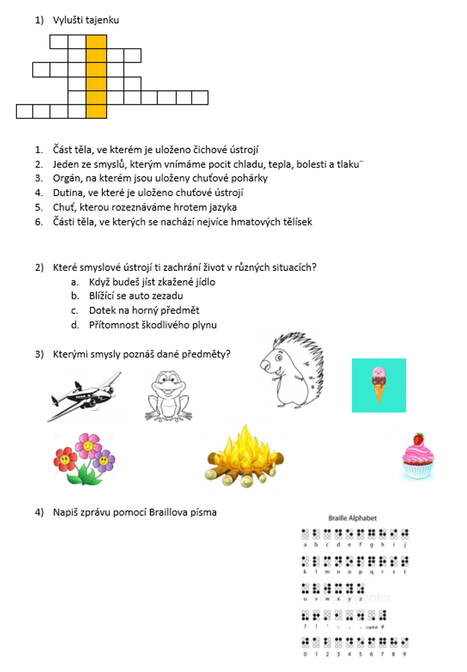 1) zapiš si do sešitu datum a téma hodiny: Smyslová ústrojí - opakování