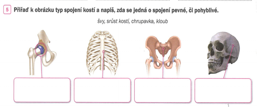 1) zapiš si do sešitu datum a téma hodiny: kosterní soustava - spojení kostí