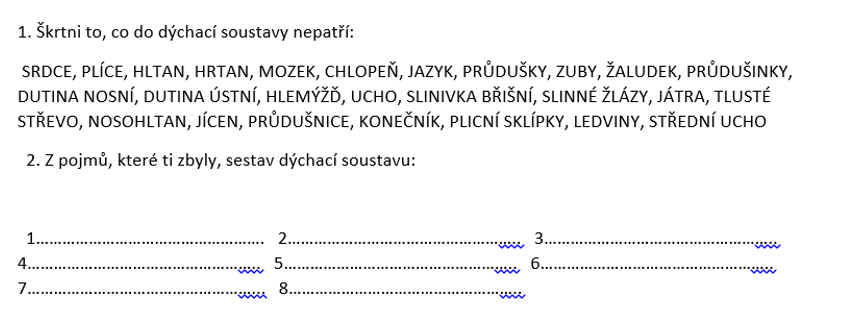 4) A nakonec vypracuj následující pracovní list do sešitu