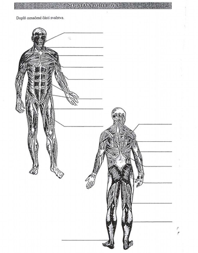1) zapiš si do sešitu datum a téma hodiny: Svalová soustava - jednotlivé svaly