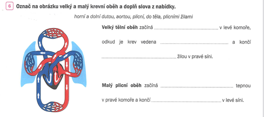 1) zapiš si do sešitu datum a téma hodiny: Oběhová soustava - krevní oběh