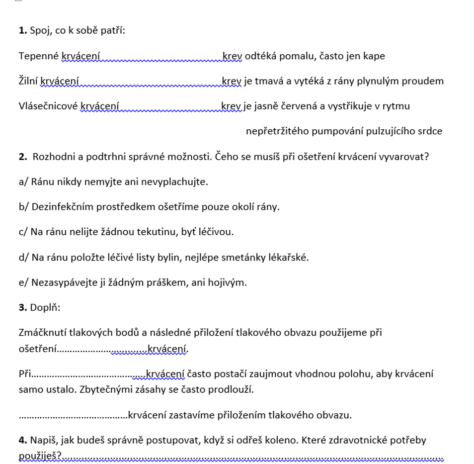 1) zapiš si do sešitu datum a téma hodiny: opakování + první pomoc